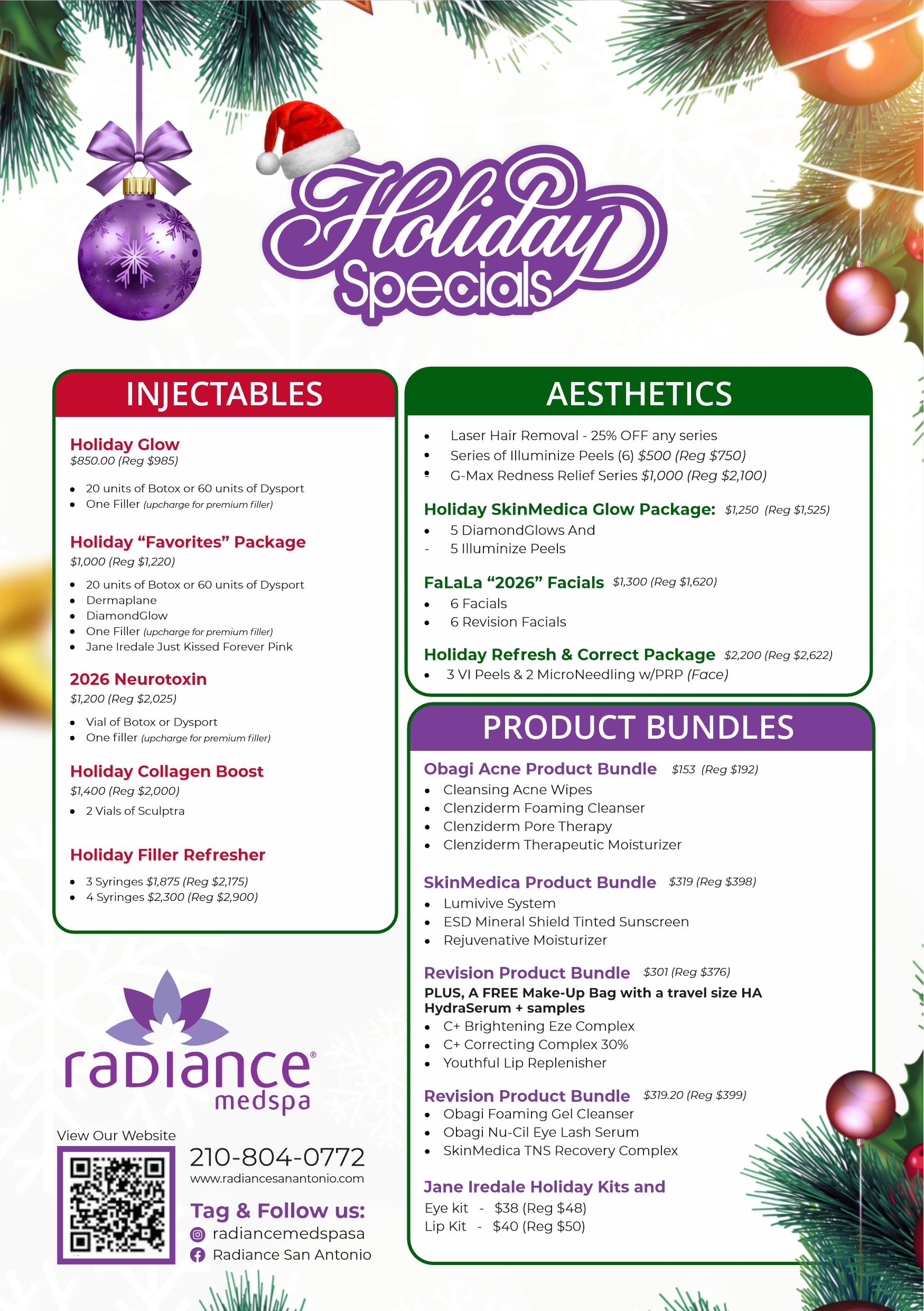 I have had several procedures done at Radiance and they have always been happy with my results. They take their time with each person and make you feel valued and important. The Spa is beautiful and relaxing.